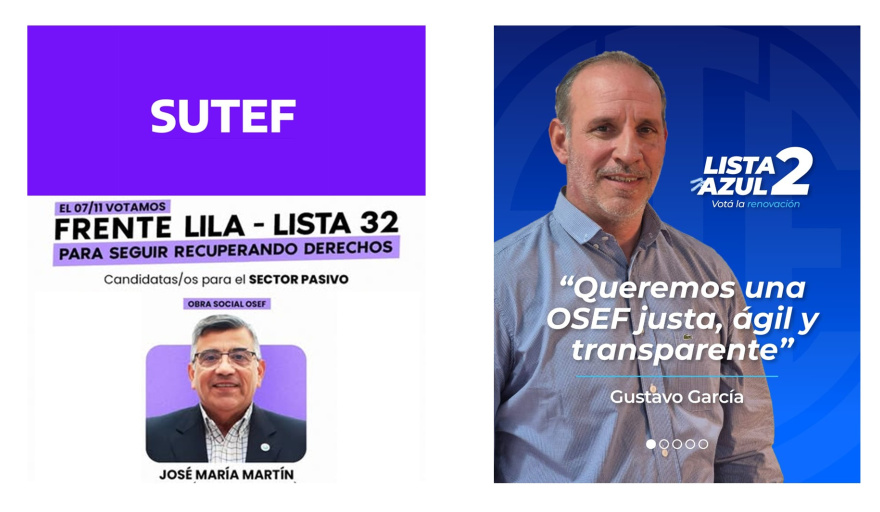 Por su parte, la Lista Lila del SUTEF, encabezada por Soria, busca mantener el control del gremio docente en la conducción de OSEF. Actualmente, el vocal activo Franco Tomasevich y el vocal pasivo José María Martín —ambos del SUTEF— integran el directorio y son parte de la gestión que enfrenta acusaciones por irregularidades en designaciones y en el manejo de fondos, incluyendo el otorgamiento de cirugías sin cobro de coseguros a afiliados “VIP” y acusaciones de sobreprecios en compras de medicamentos. A pesar de dichas acusaciones, José María Martín se presenta como candidato de la lista de SUTEF.